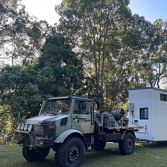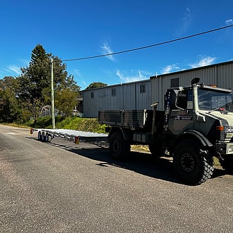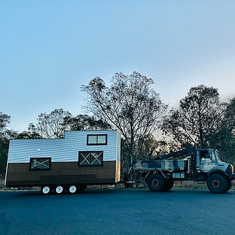 All tiny home relocations are completed with our ex-military Mercedes Benz Unimog; the ultimate reliable rig. We've done the work to make sure our vehicles are compliant with transport laws and weight regulations, with all the equipment to secure your tiny home throughout the relocation journey.