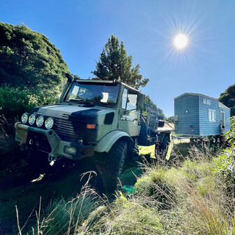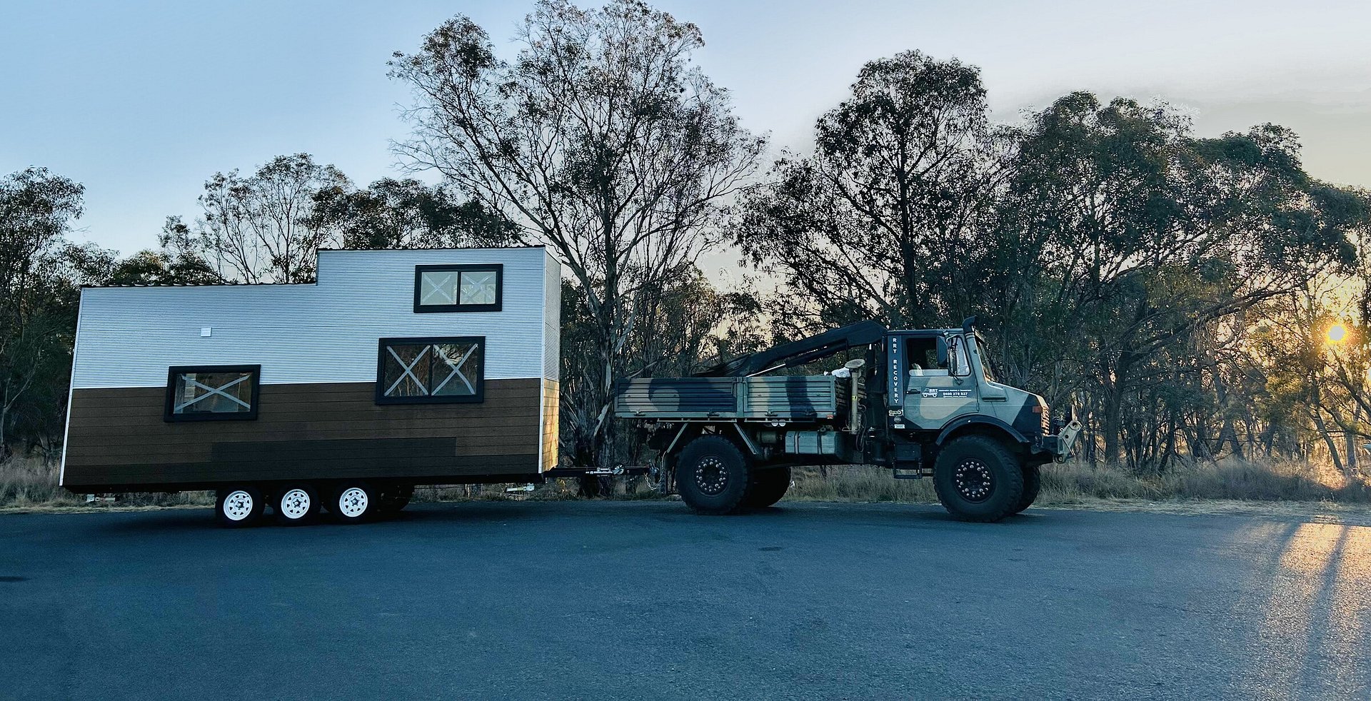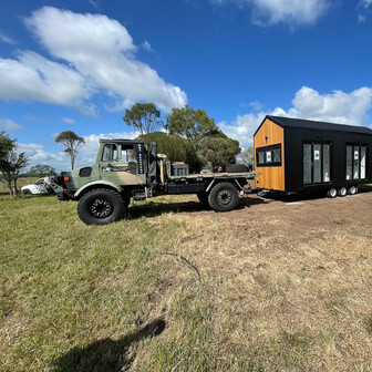 All tiny home relocations are completed with our ex-military Mercedes Benz Unimog; the ultimate reliable rig. We've done the work to make sure our vehicles are compliant with transport laws and weight regulations, with all the equipment to secure your tiny home throughout the relocation journey.